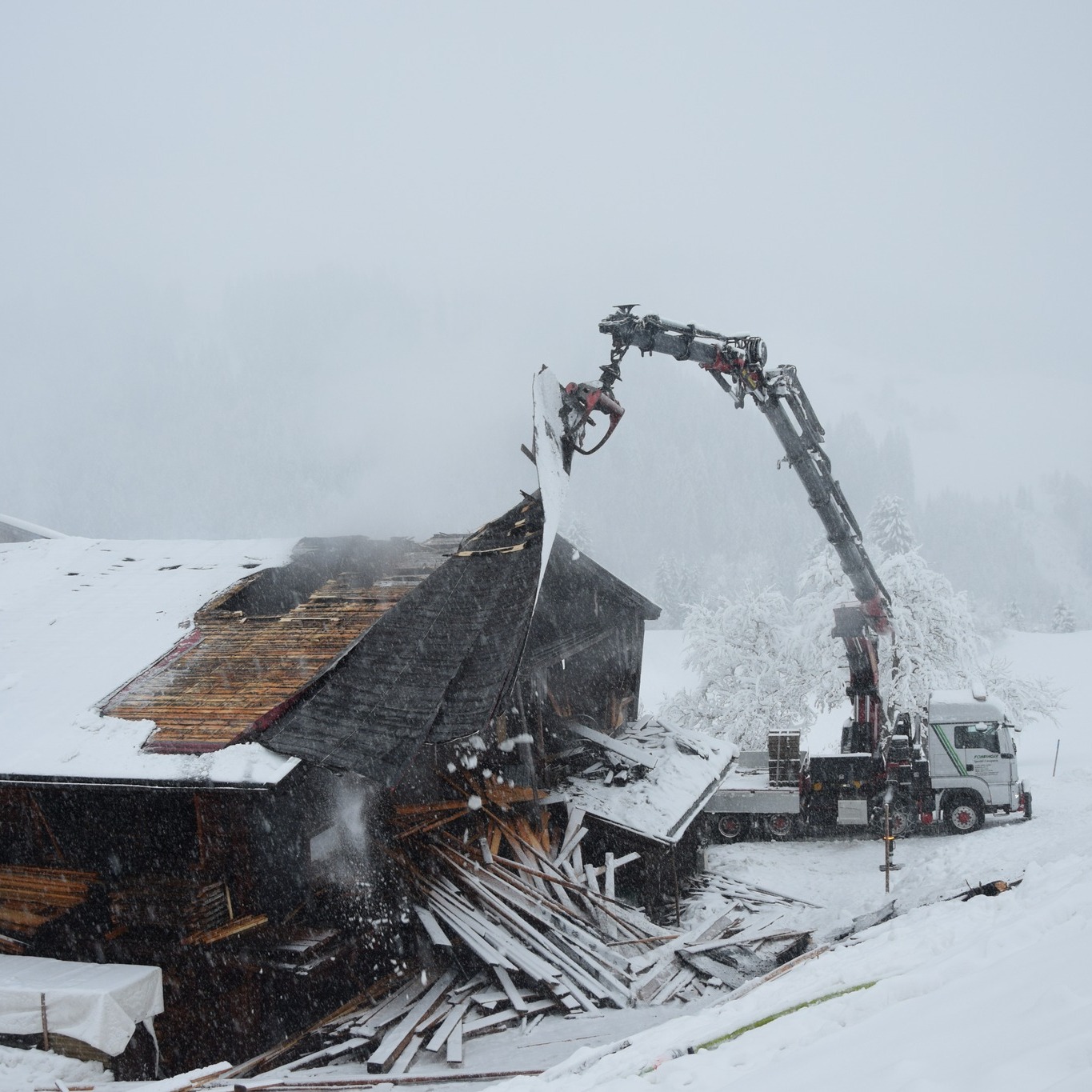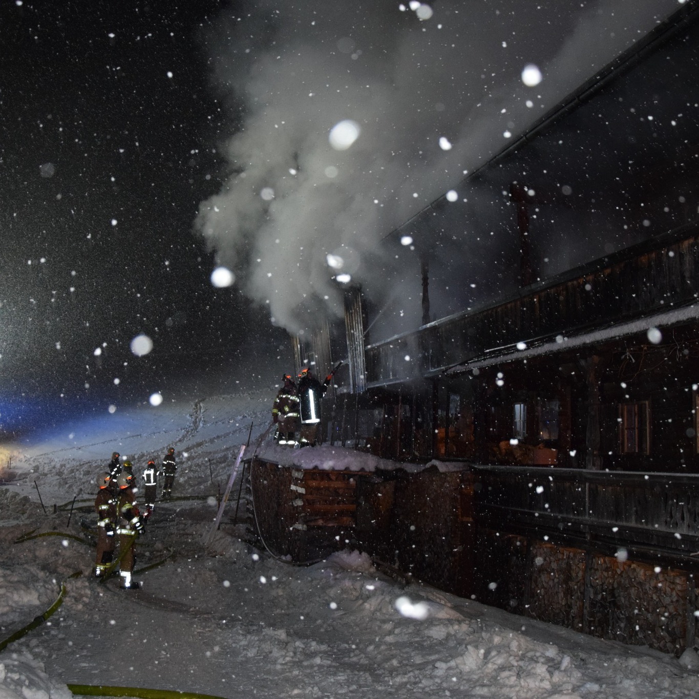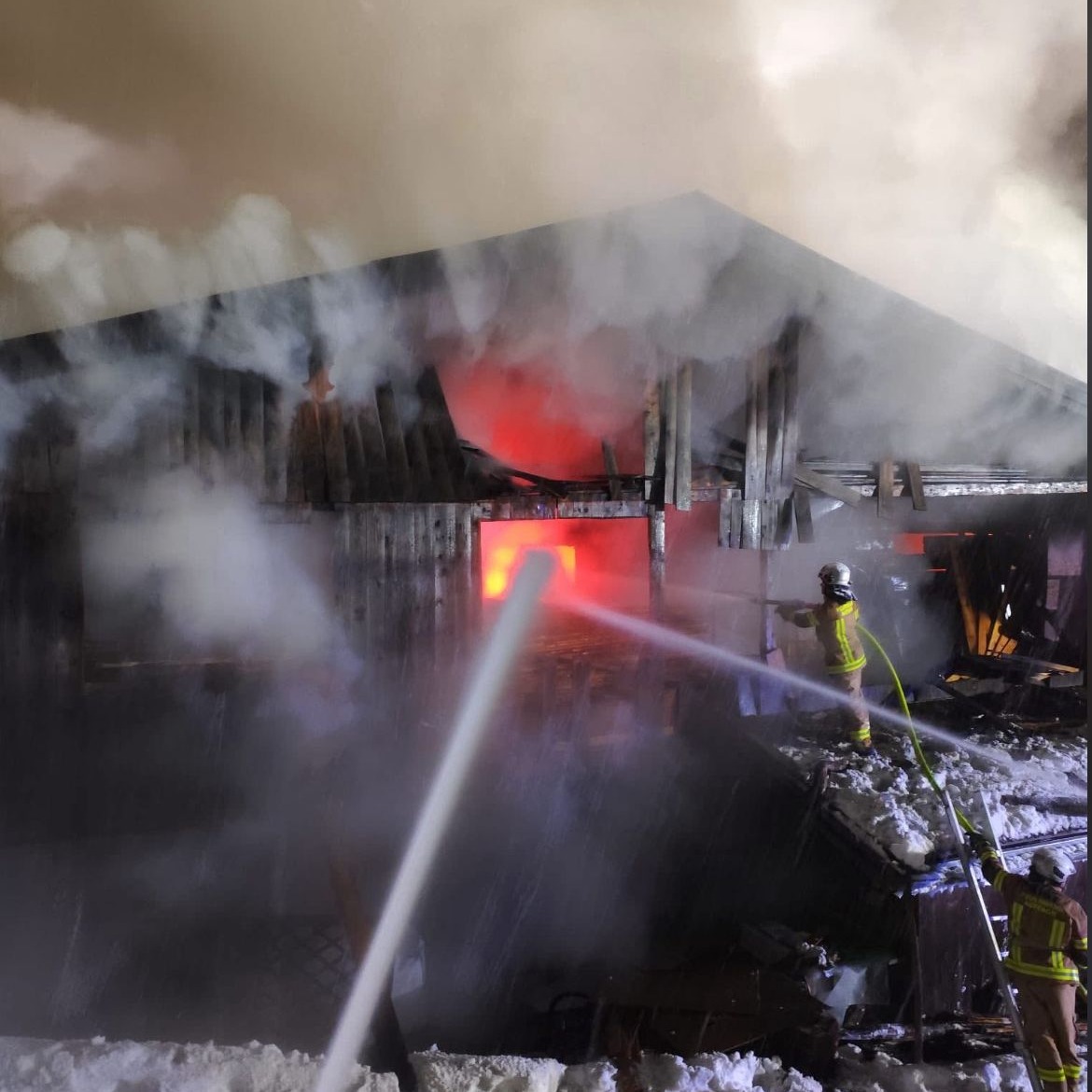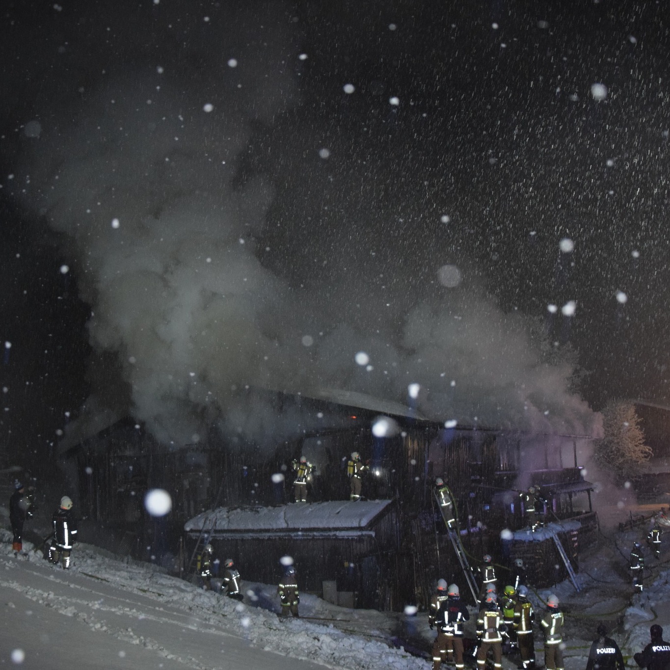 Umgehend rückten wir bei sehr winterlichen Straßenverhältnissen mit allen 7 Fahrzeugen nach „Hinterpraa“ aus. 🚒